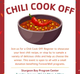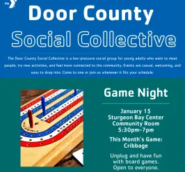 Upcoming Events See all events 15 Jan Young Adult Game NightSturgeon Bay Program Center5:30 PM 20 Jan Chili CookoffSturgeon Bay Program Center11:30 AM 21 Jan Wisdom WednesdayJackie and Steve Kane Center11:30 AM 22 Jan Young Adult Monthly Social6:00 PM 26 Jan Parfait Bar & Music BINGOJackie and Steve Kane Center11:30 AM 26 Jan Young Adult Book Club6:00 AM 28 Jan Tech Talks with QuantumJackie and Steve Kane Center11:00 AM 29 Jan Page Turner's Book ClubSturgeon Bay Program Center11:45 AM 29 Jan Facilities Closing Early5:15 PM Load More